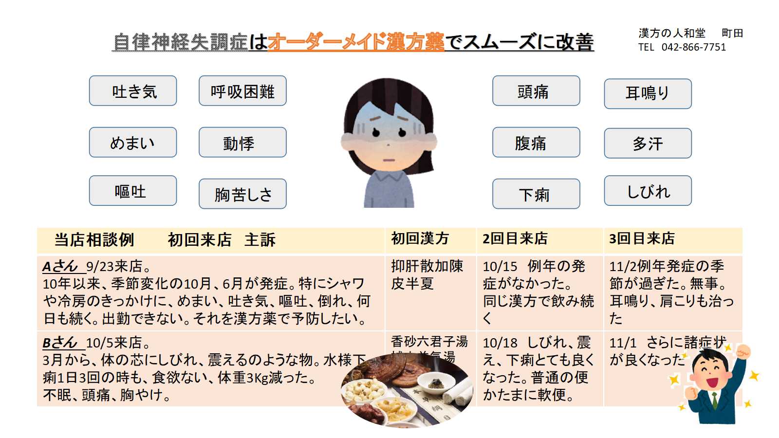 主な症状:不眠、動悸、物忘れ、疲労感、めまい、食欲不振、冷えなど。